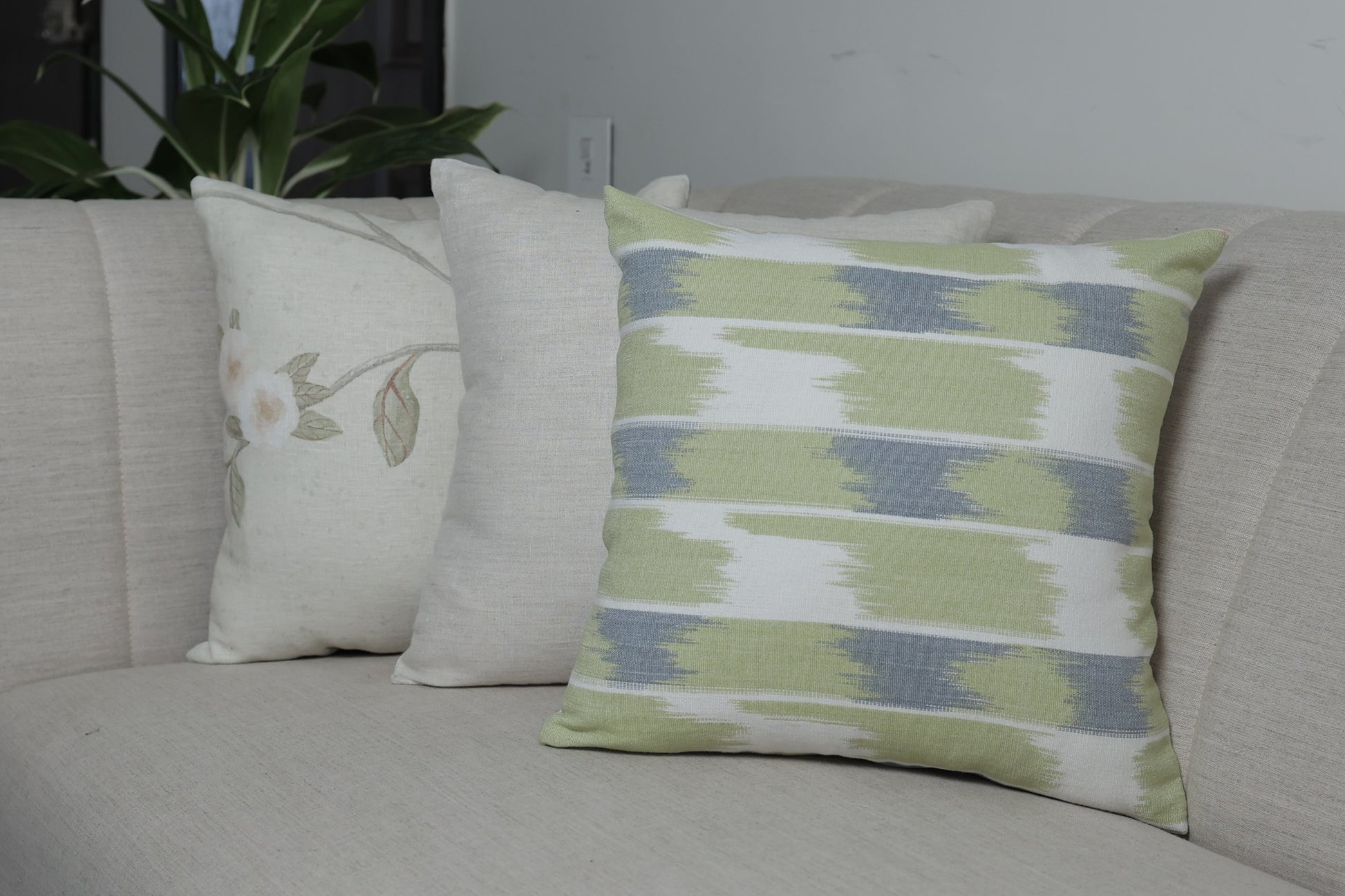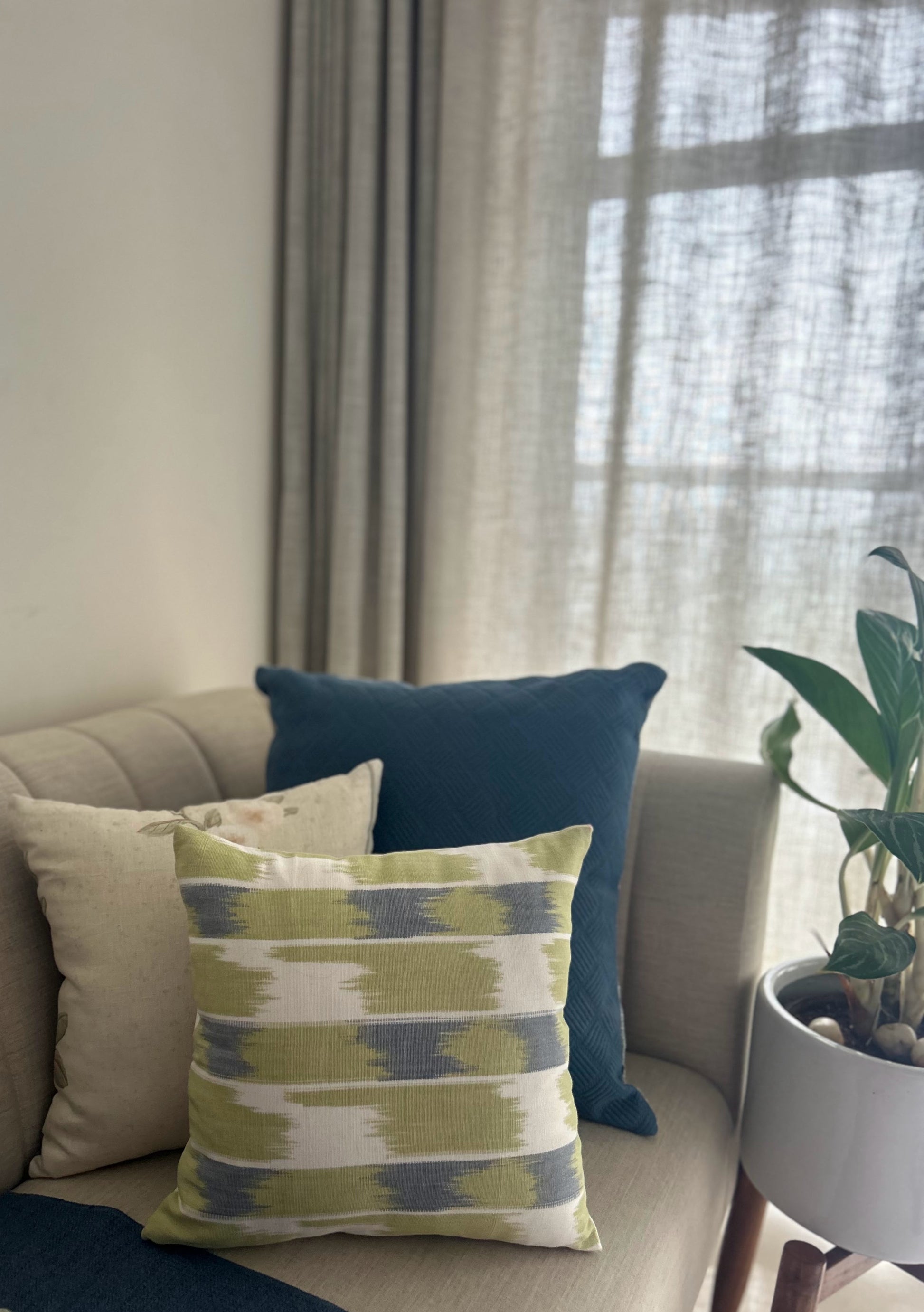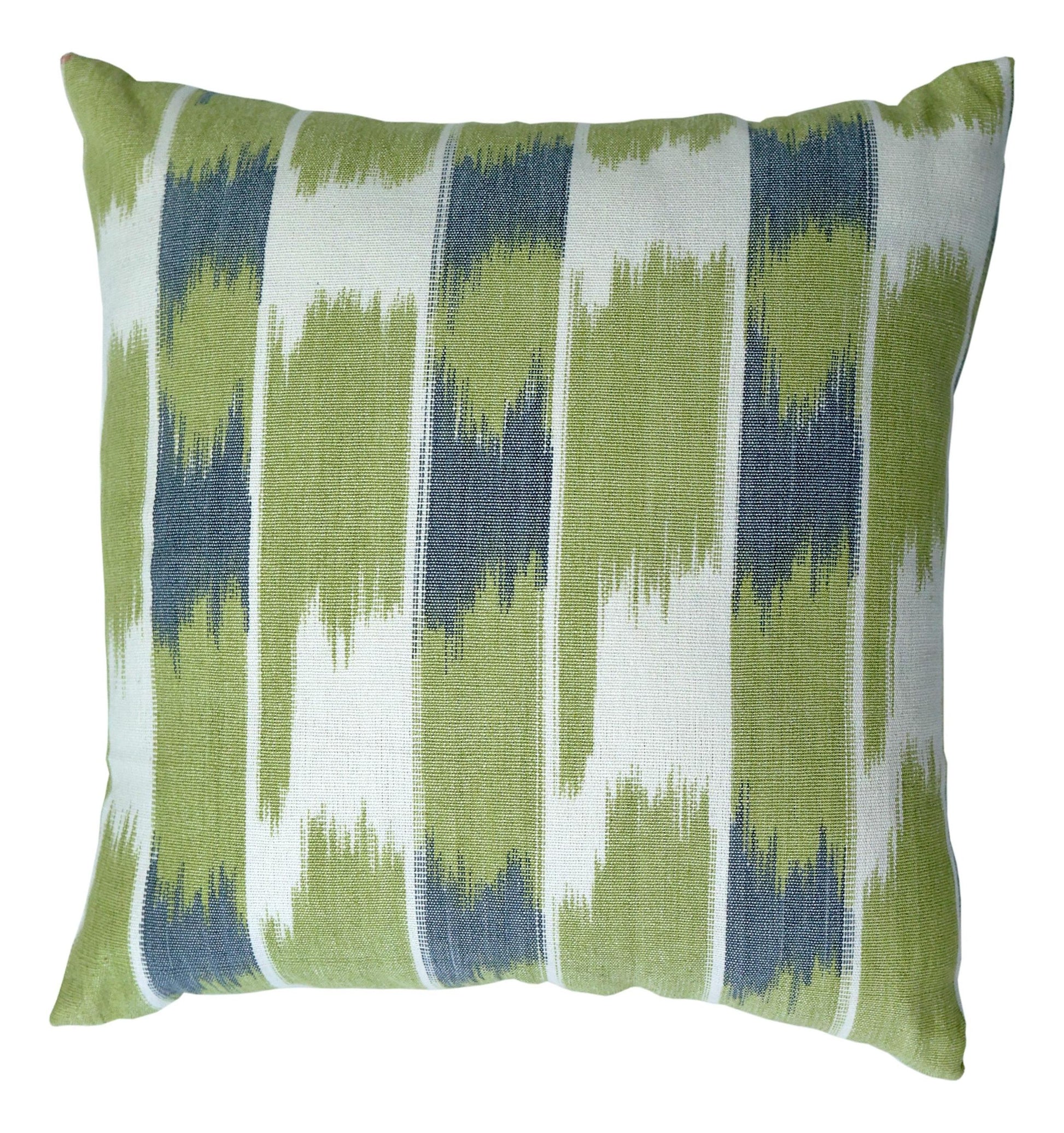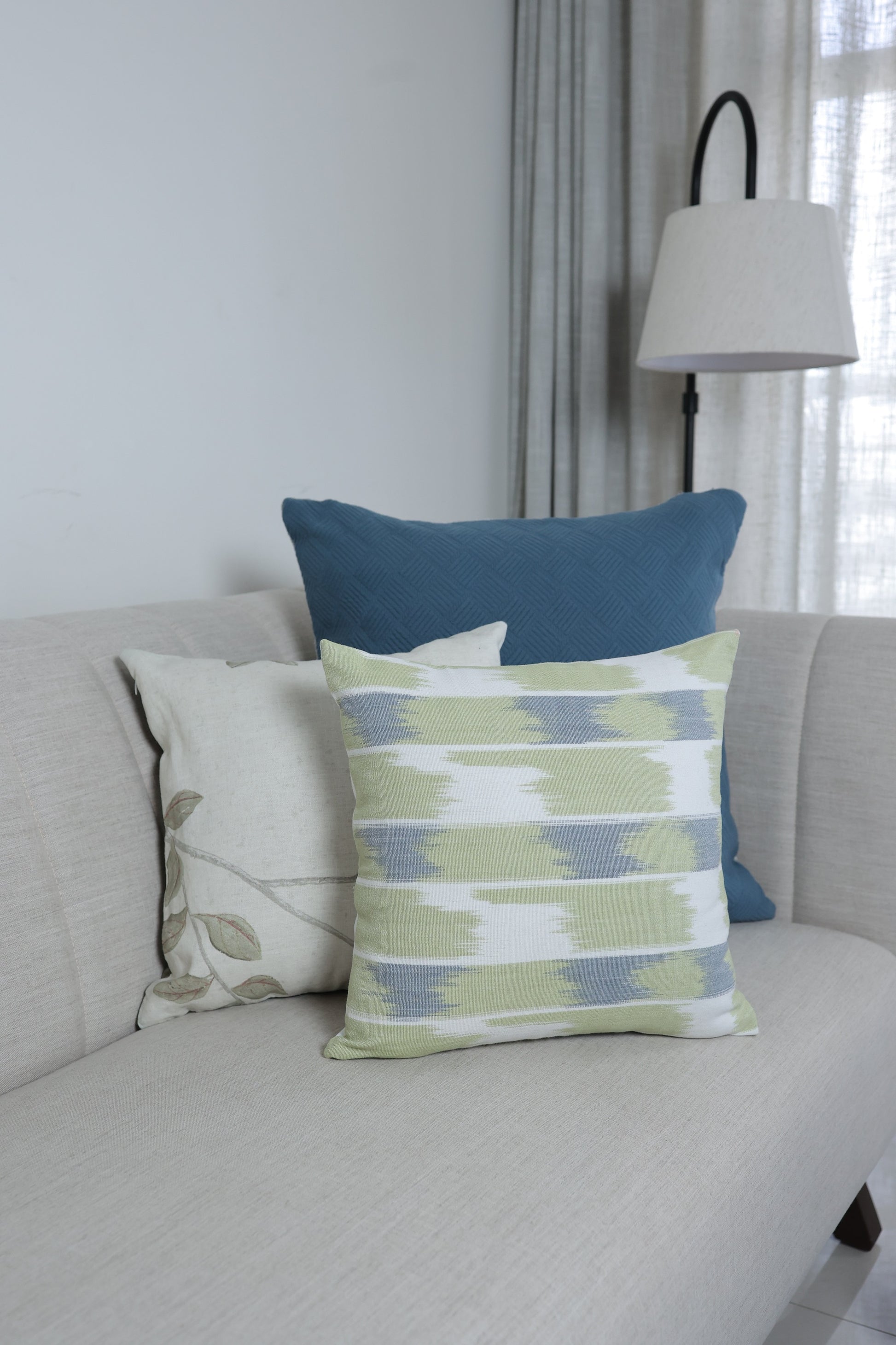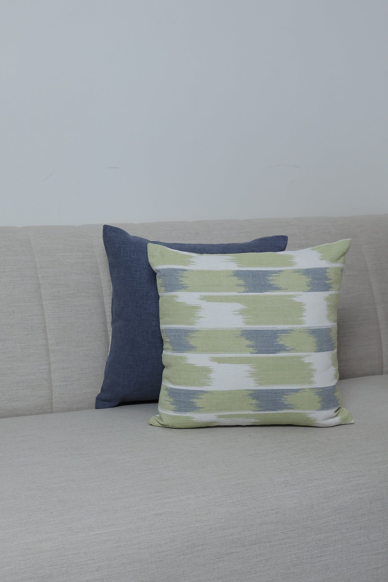 Cotton Cushion Cover in Ikat pattern in white, geern and light blue
