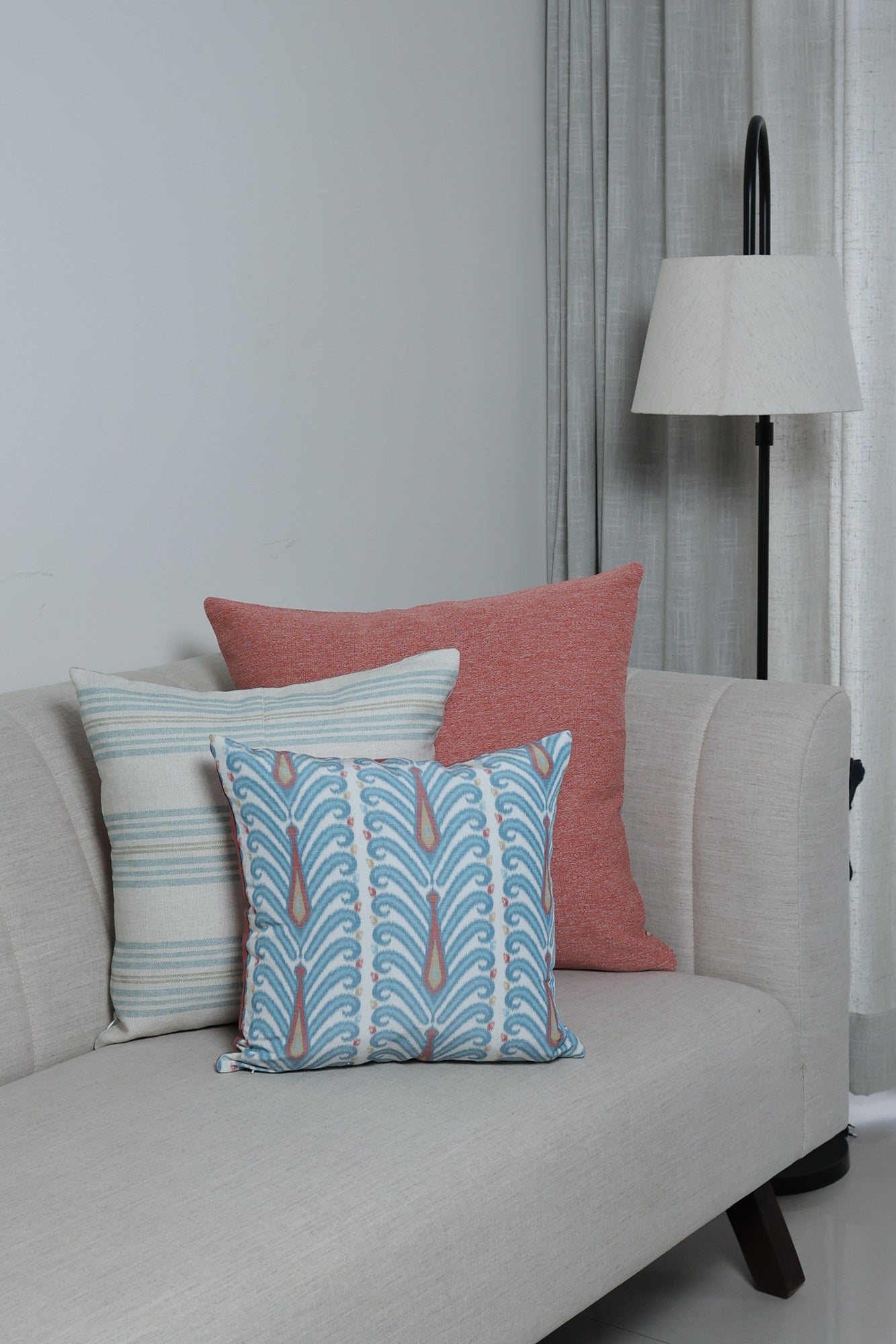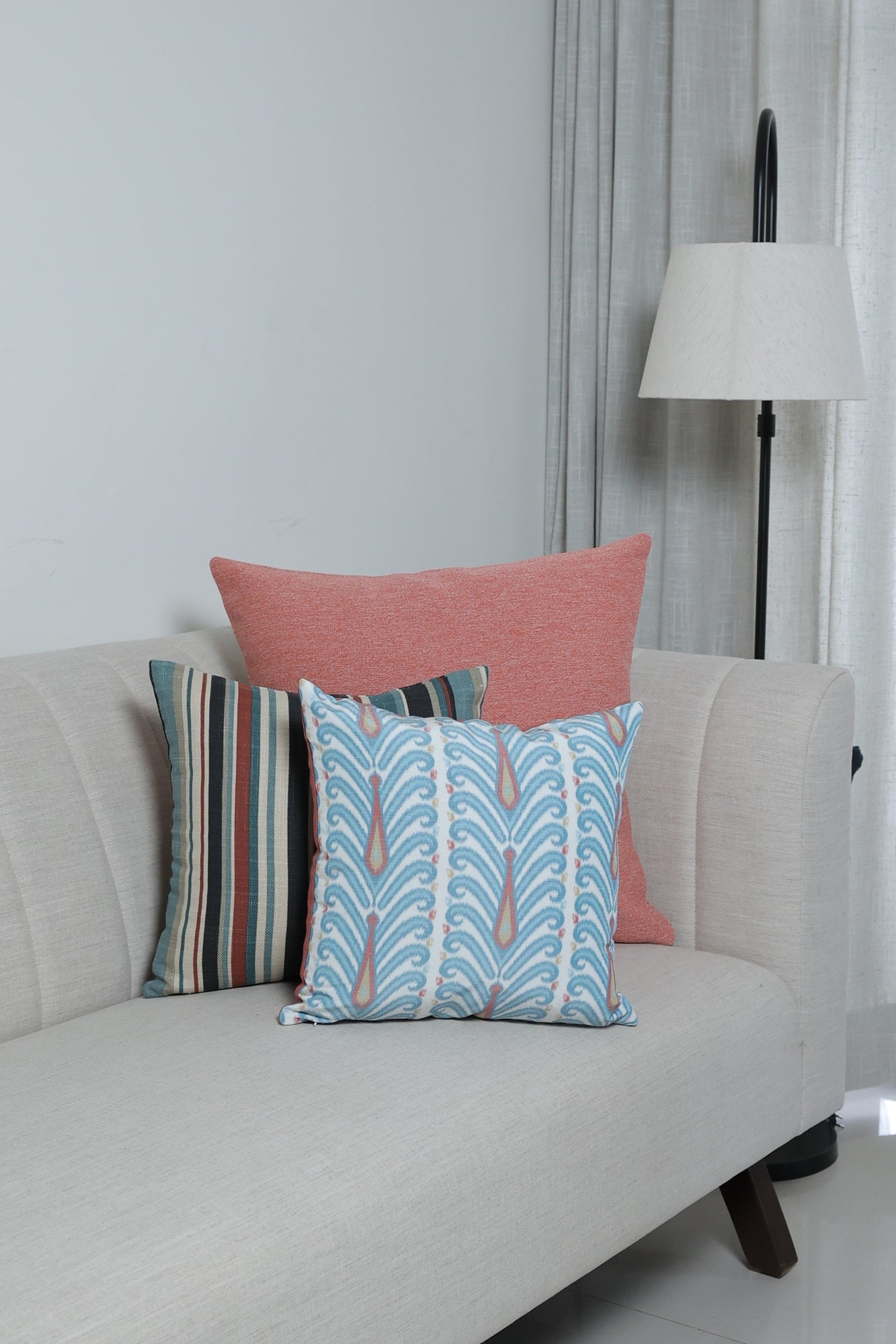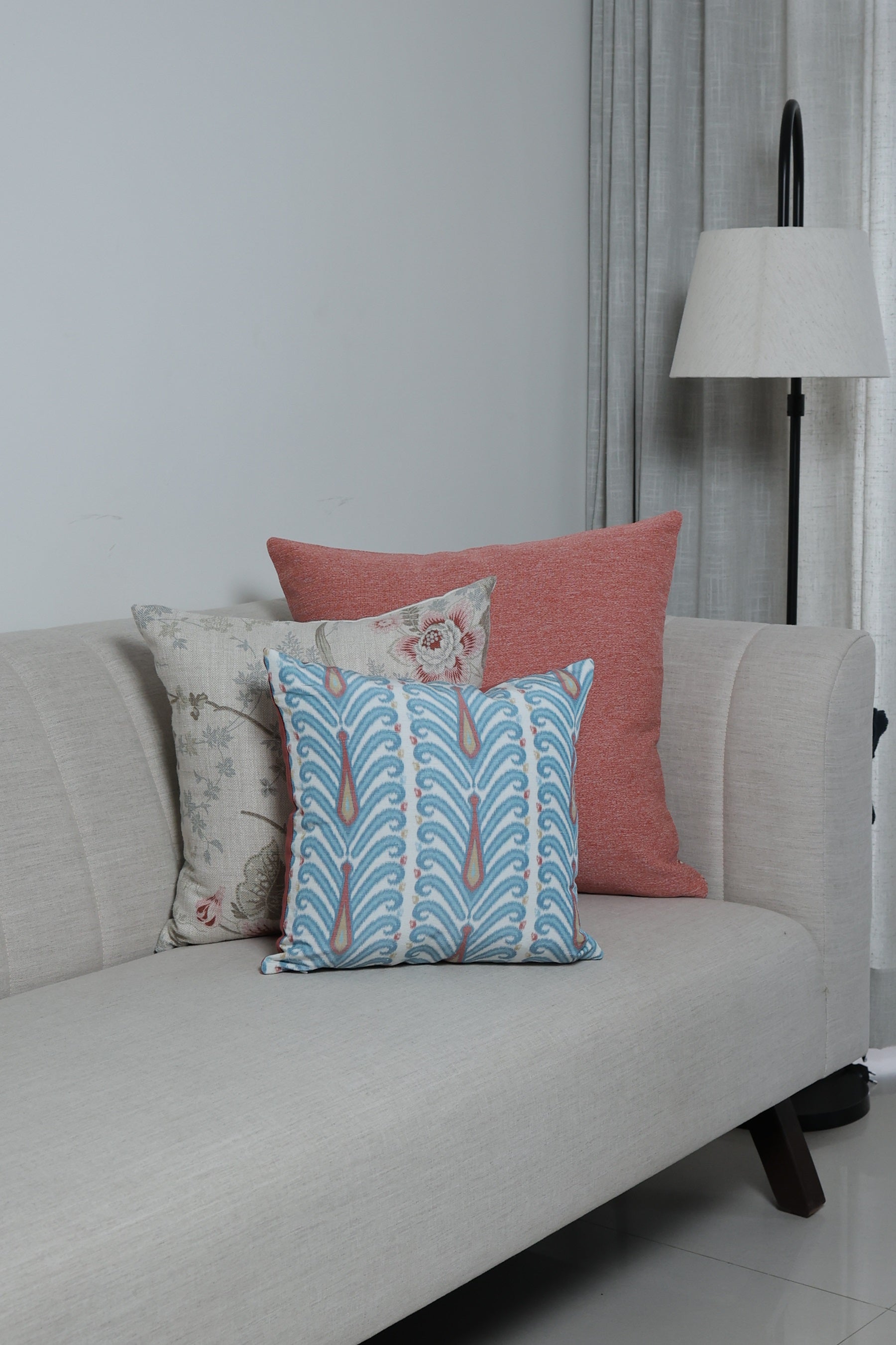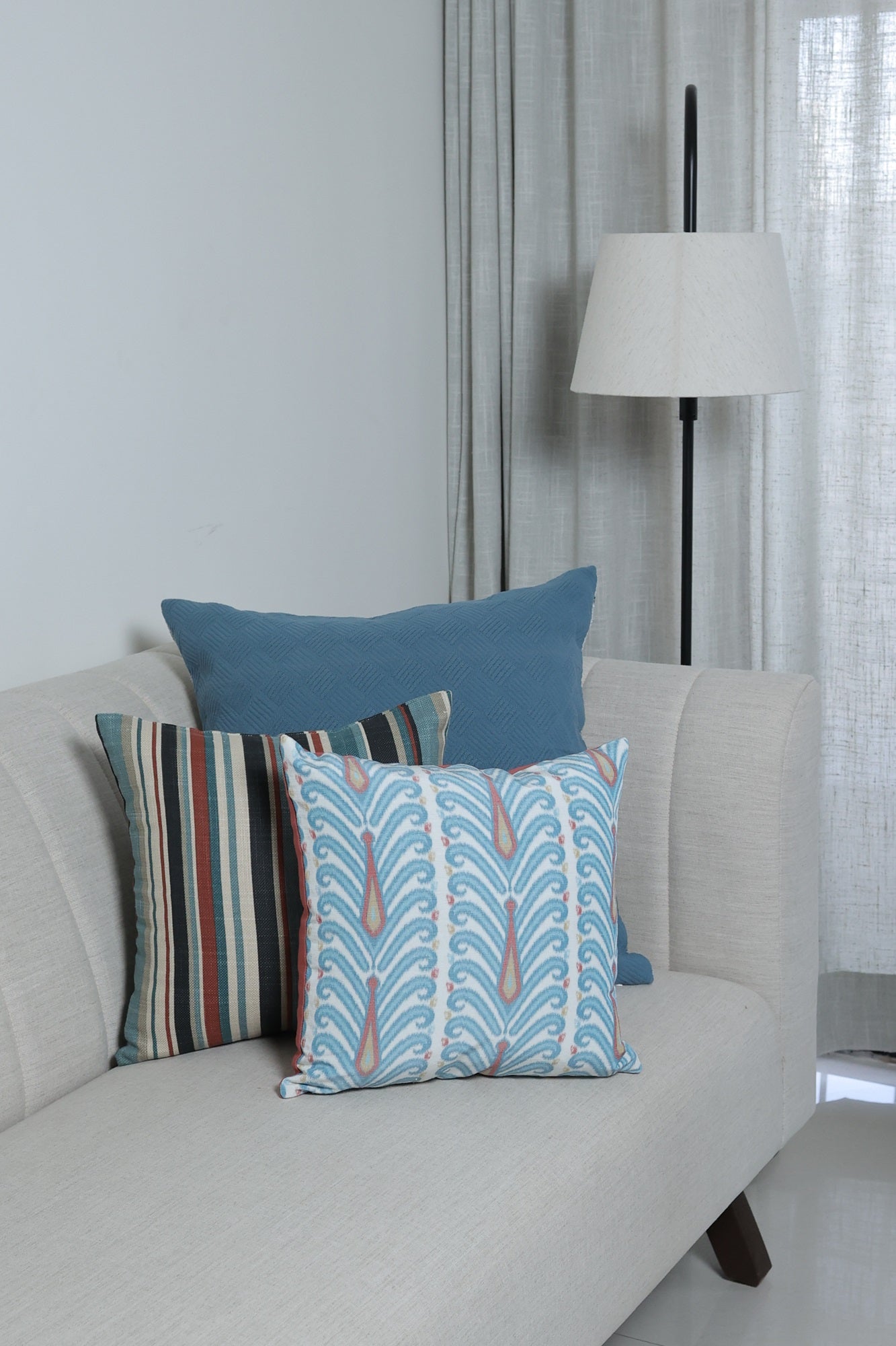 Peacock color stunning cushion cover made up of fabric with delicate sheen and blend of linen and polyester