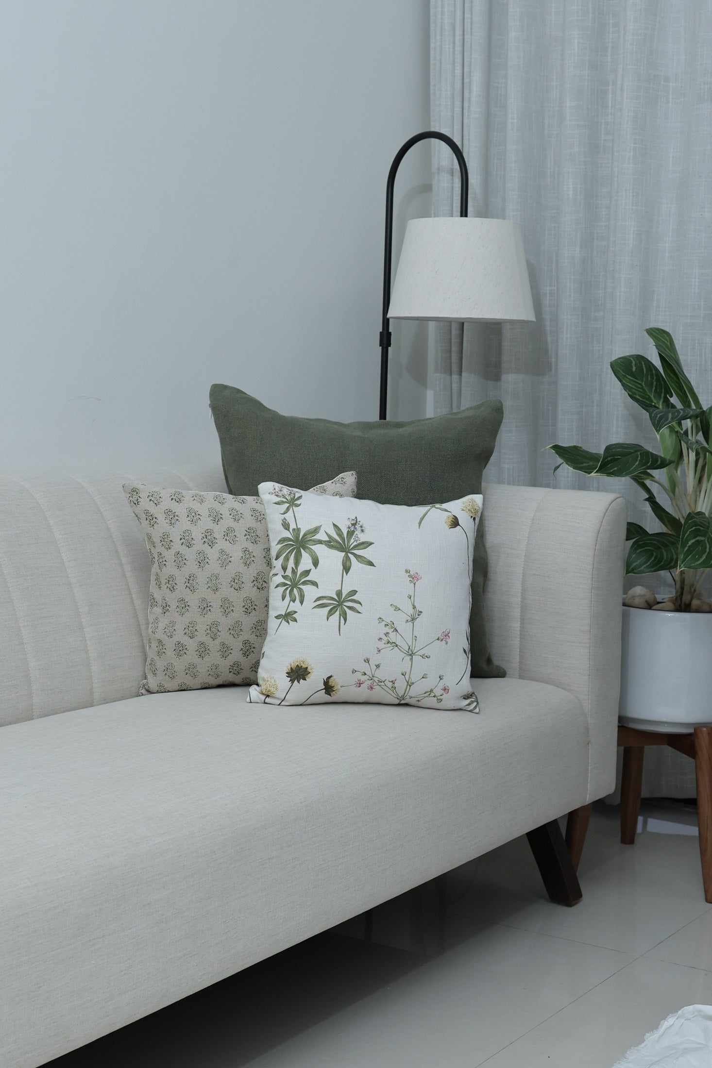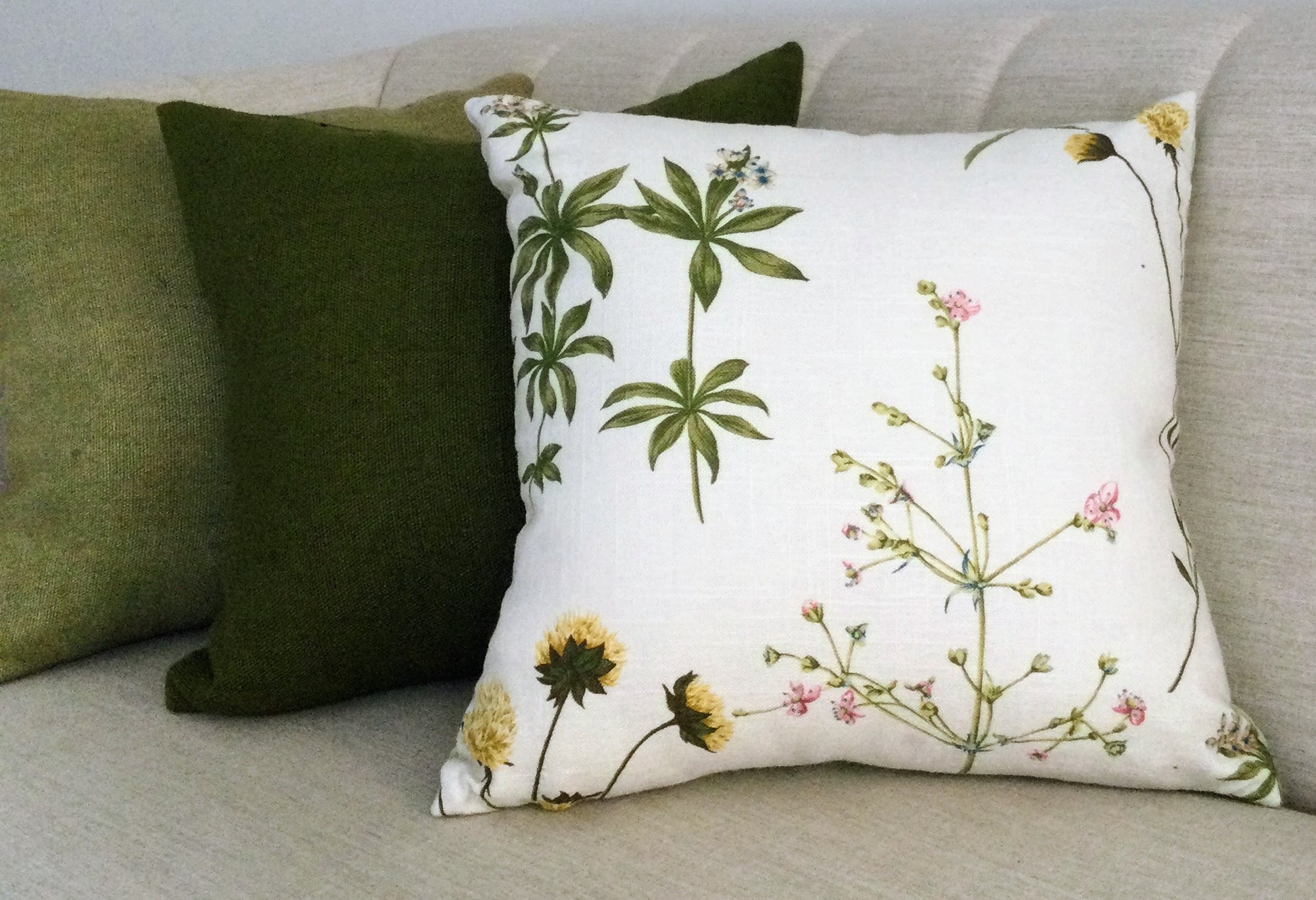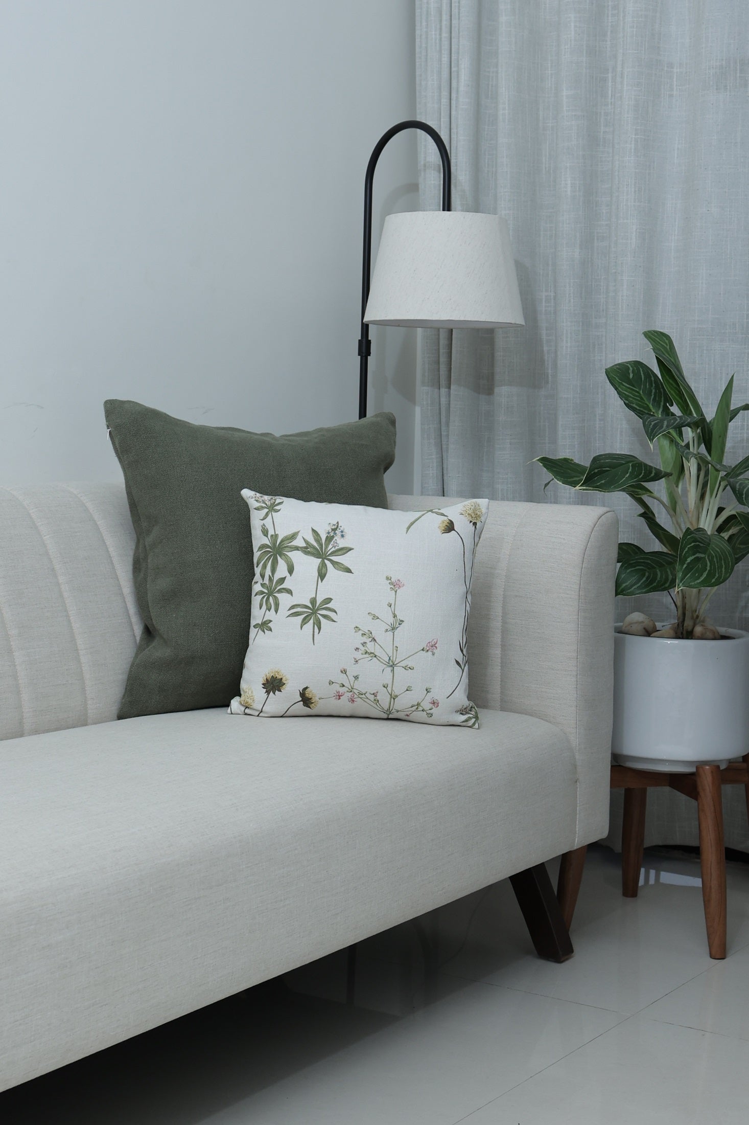 Botanical Print on soft Linen cushion cover, cotton lining inside